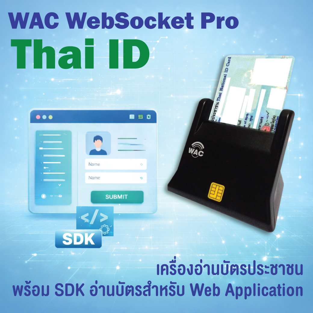 - • รับพัฒนาโซลูชั่นการอ่านบัตรประชาชน ทั้งแบบ Windows, Android, iOS รวมถึงการเชื่อมต่อกับ Web app