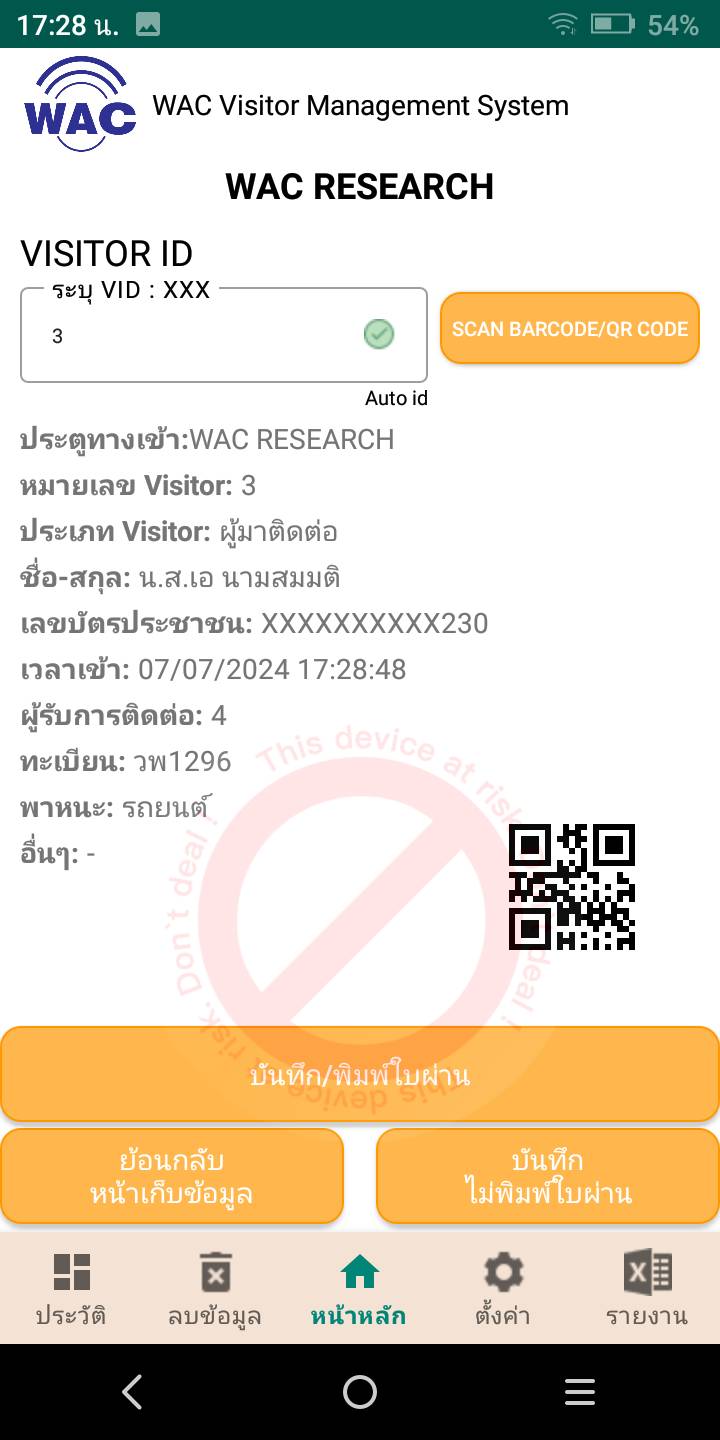 WAC Visitor Pass Mobile Lite เครื่องแลกบัตรผู้มาติดต่อ สำหรับหมู่บ้าน-คอนโด ใช้ง่าย ไม่ต้องจ่ายรายปี