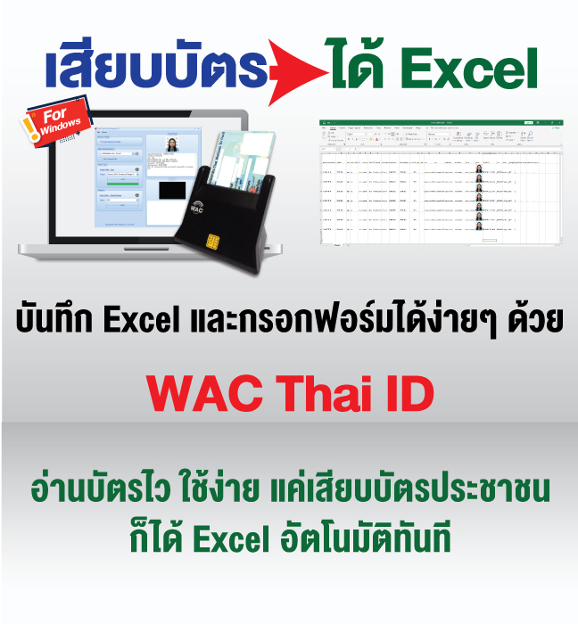 จำหน่ายเครื่องอ่านบัตรประชาชนและโปรแกรมอ่านบัตรสำหรับงานประเภทต่างๆและงานที่ต้องการยืนยันตัวตน รับพัฒนาโซลูชั่นสำหรับอ่านบัตรประชาชน